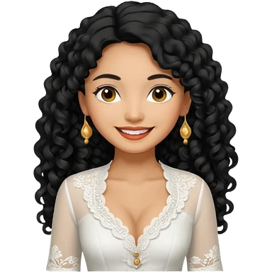 tan skin women, with black long Curly hair, wear white kebaya , and pearl earring emoji