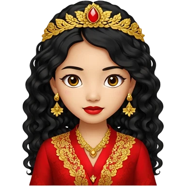 Indonesian girl, java girl with long curly hair, wear kebaya, emoji