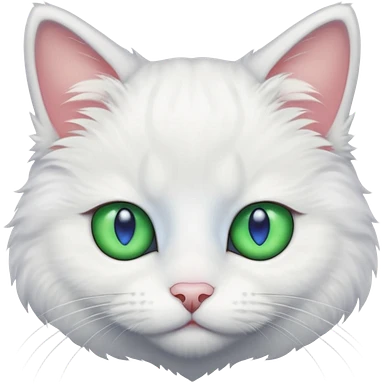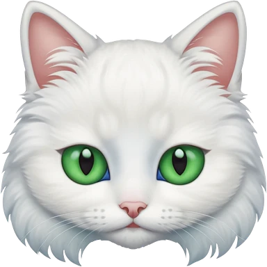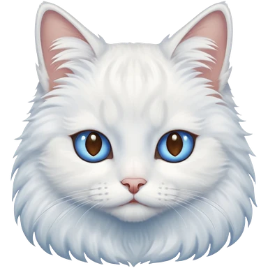 一只异瞳(一只棕色,一只蓝色)长毛的白猫 emoji