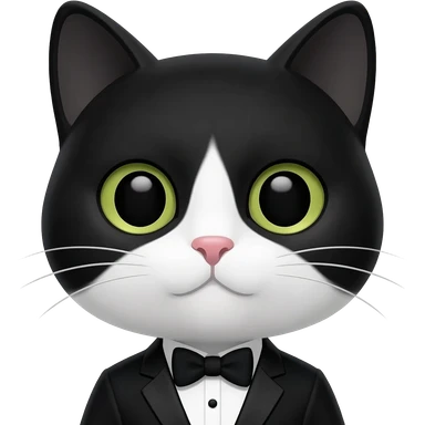 shorthair tuxedo cat with all black face and white mouth emoji