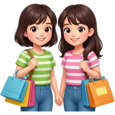 two asian girls friend shopping emoji