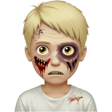 create boy blonde hair long messy, light eyes, white t shirt, style zombie emoji