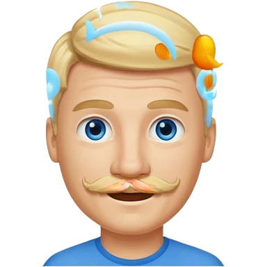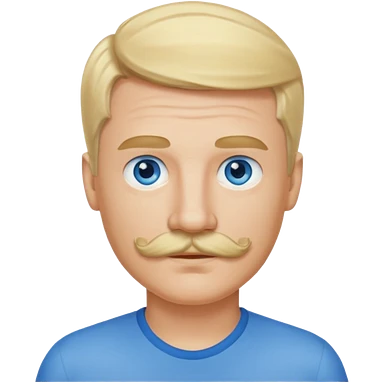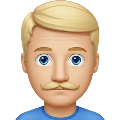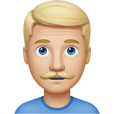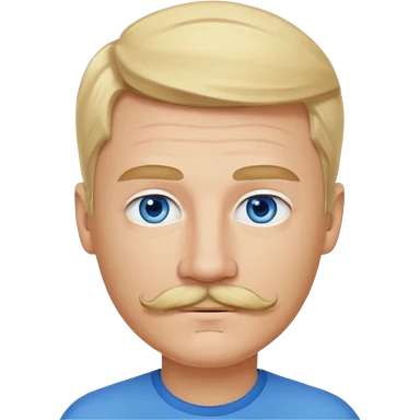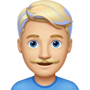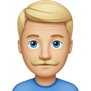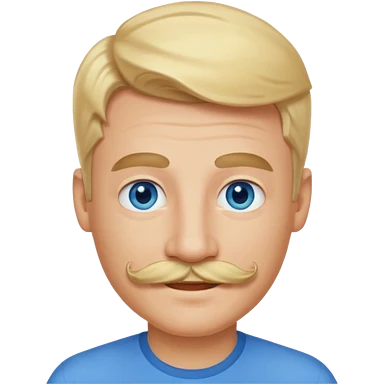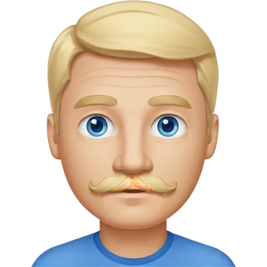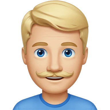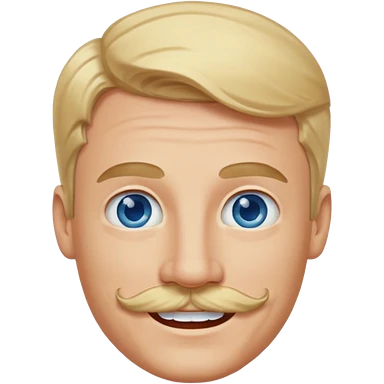 normal emoji 👨🏼 white guy with blond hair, mustache, and blue eyes. No shoulders or neck. Just head. Hair a little mussed and stylish. Smiling emoji