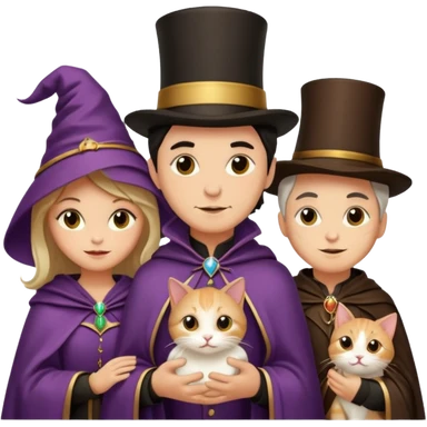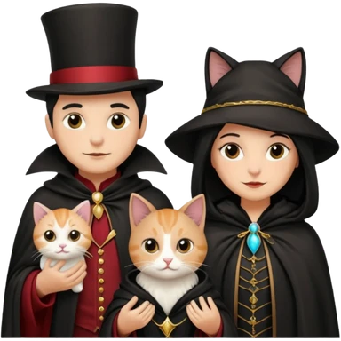magician couple and their pet cat emoji