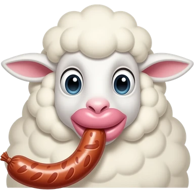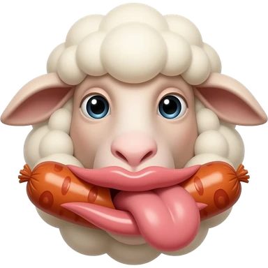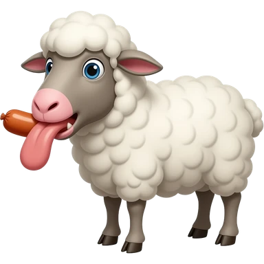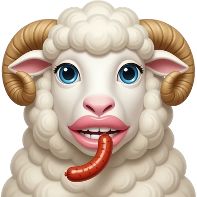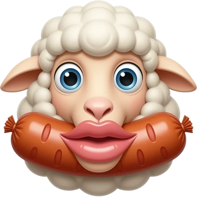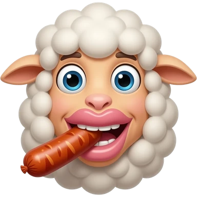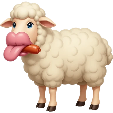 Sheep with big puffy comfy botox filler lips sucking sausage hard with no teeth emoji