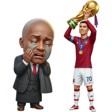 Lamine yamal en train de pleuré devant ronaldo pendant que ronaldo soulève la coupe du monde emoji