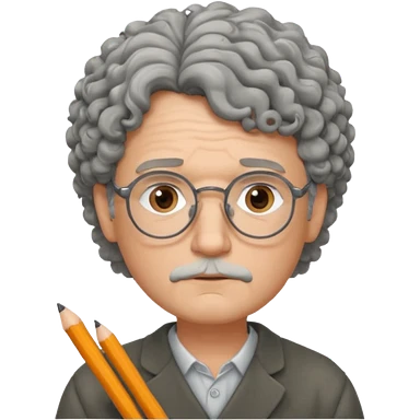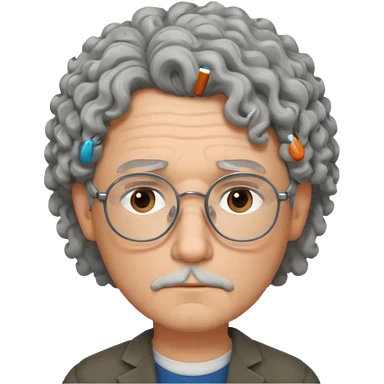 Sad male Writer with curly gray hair and glasses emoji