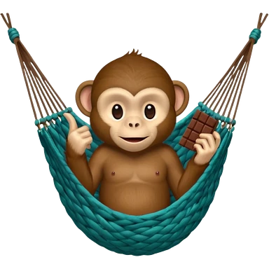 affe liegt im dschungel in einer hängematte, isst schokolade emoji
