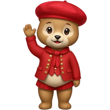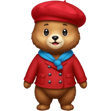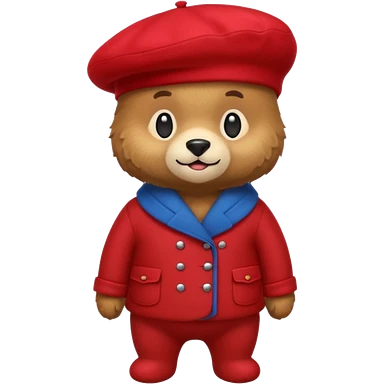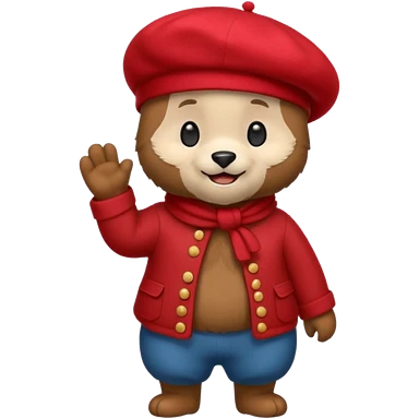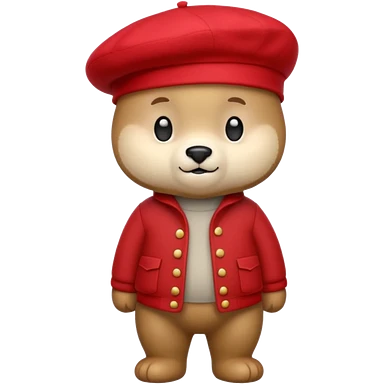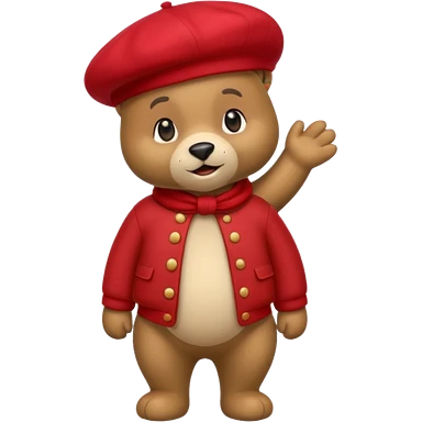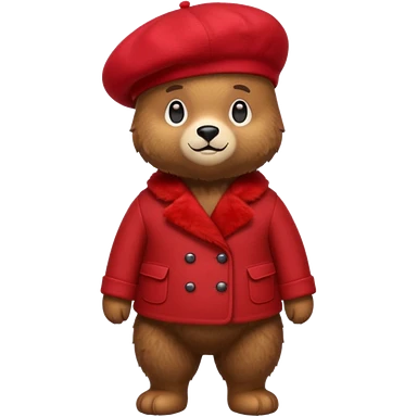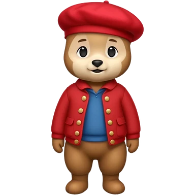 A cute emoji bear, full-length, side view, wearing a stylish red beret. emoji