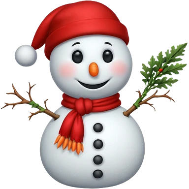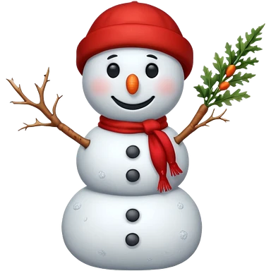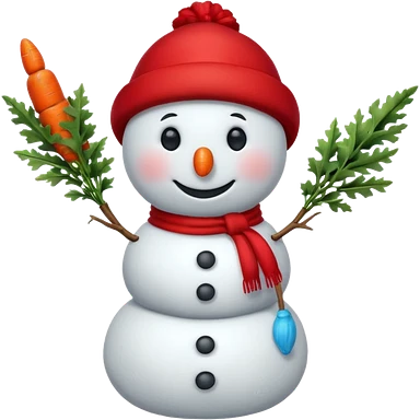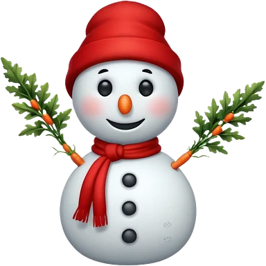 A cute snowman emoji, full-length, side view, wearing a stylish red beret. emoji