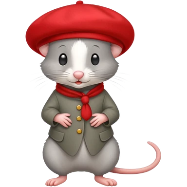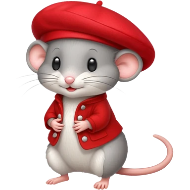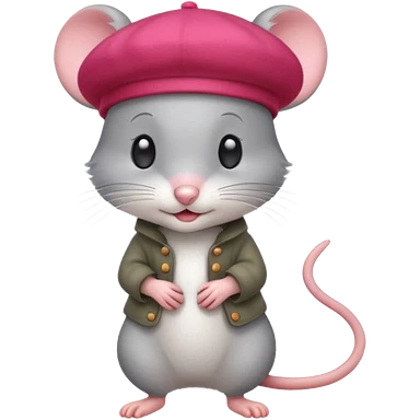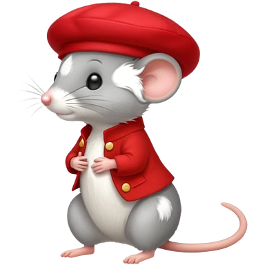 A cute mouse emoji, full-length, side view, wearing a stylish red beret. emoji