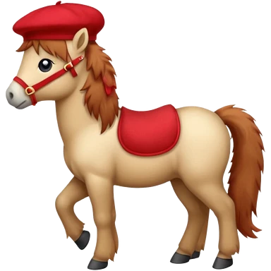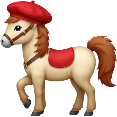 A cute pony (horse) emoji, full body, standing in side view, wearing a stylish red beret. emoji