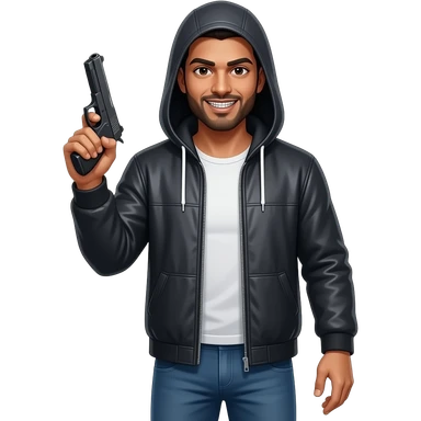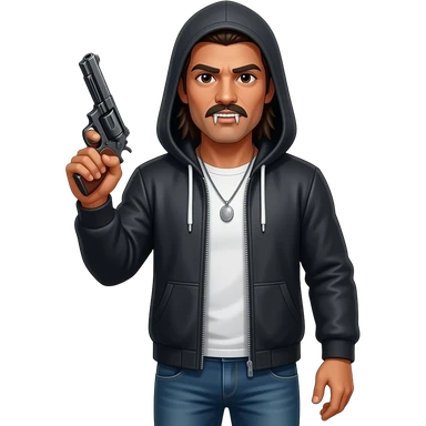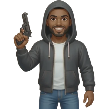 brown boy holding up a gun with pants down low emoji