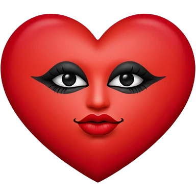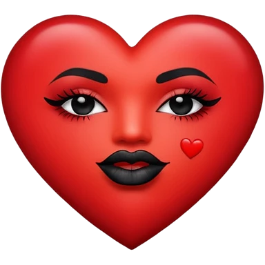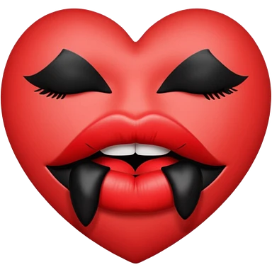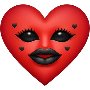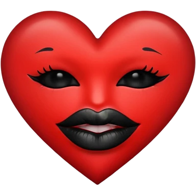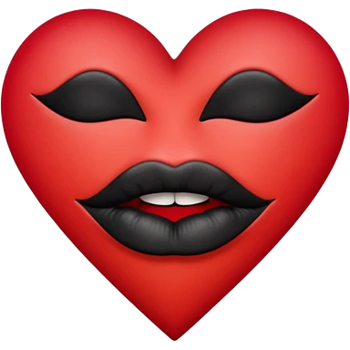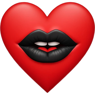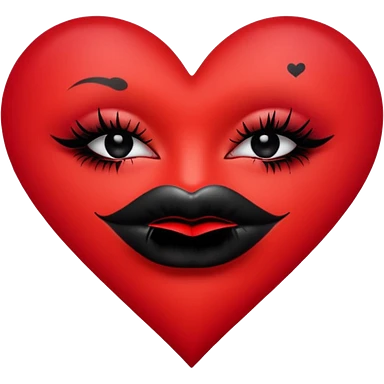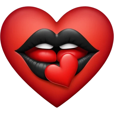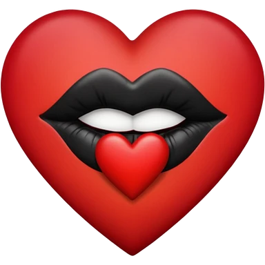 A solid red gradient heart, with three black lipstick kiss marks of different angles printed on it, retro matte texture, high contrast, clean edges, sticker style, romantic and sexy vibe, minimalist 2D illustration, no background emoji