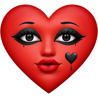 A solid red gradient heart, with three black lipstick kiss marks of different angles printed on it, retro matte texture, high contrast, clean edges, sticker style, emoji