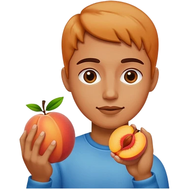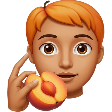 Touching the halved peach with a finger. emoji
