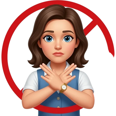 A person making an “X” gesture with their arms crossed in front of their chest, clearly signaling “no” or “stop”. The pose is front-facing, with both arms forming a bold X shape. Neutral background, clear visibility of the gesture, expressive and easy to understand. emoji