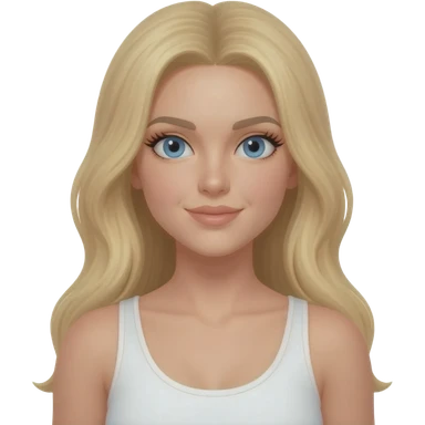 Cheveux lisse bien lisse blond avec les yeux bleus et un débardeur blanc et du mascara emoji