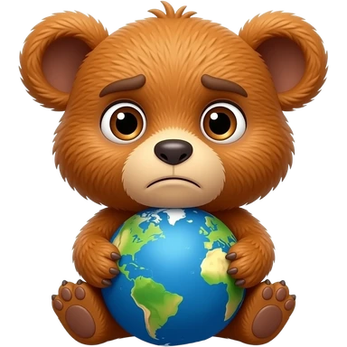 Official Cheburashka character, exact Soviet cartoon style, orange-brown fur, giant round floppy ears on the sides of the head, small bear-like body, serious but kind expression. Hugging a blue globe of the Earth with both arms, paws wrapped around the planet. Vector flat illustration emoji