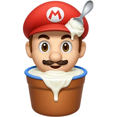 genera un'emoji di super mario arrabbiato con un vasetto di yogurt emoji