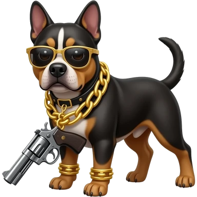 gangster dog with gold chains and a gun emoji