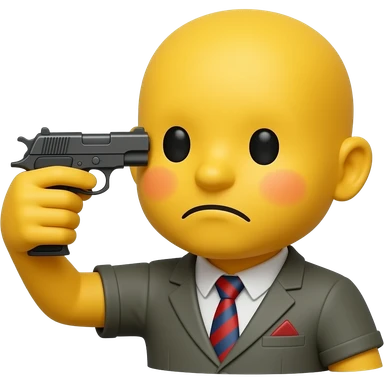 a pensive yellow emoji holding a gun to its head emoji