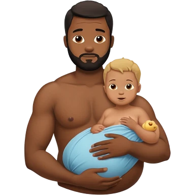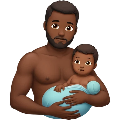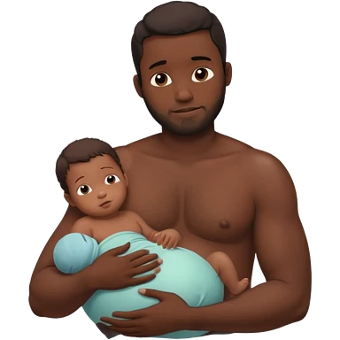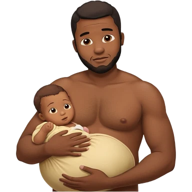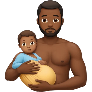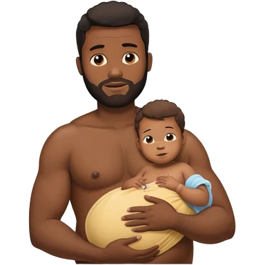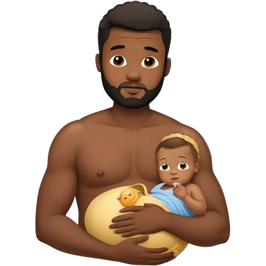 A shirtless pregnant burly black man breastfeeding his baby emoji
