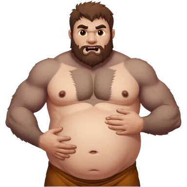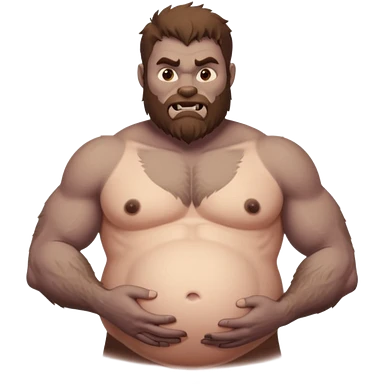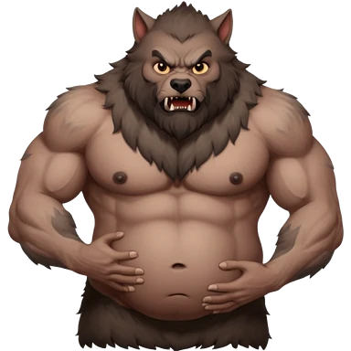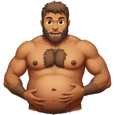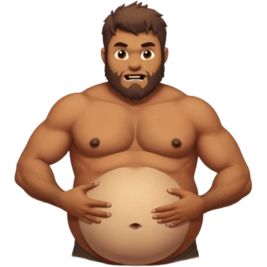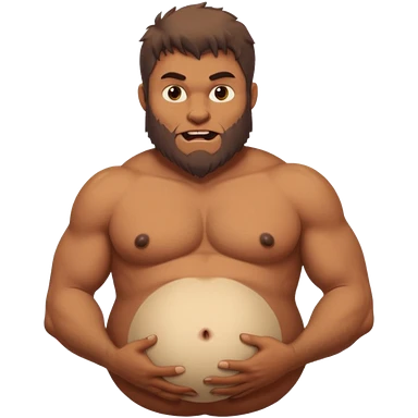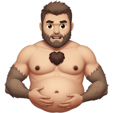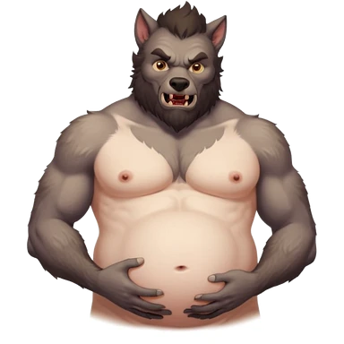 A shirtless pregnant burly male werewolf holding his pregnant belly emoji
