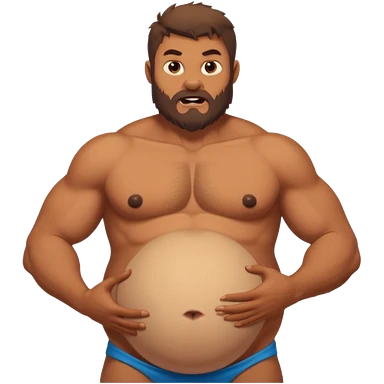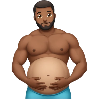 A shirtless pregnant burly black man holding his pregnant belly emoji