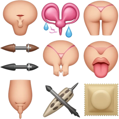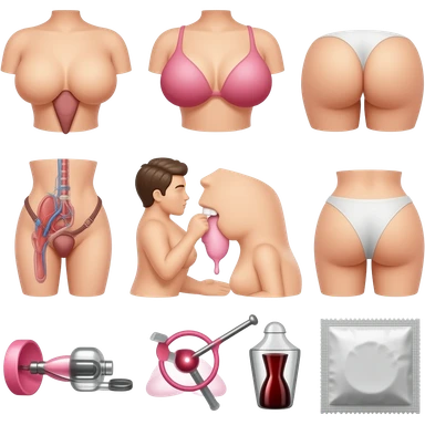 Venice Create explicit sexual emojis in Apple's iOS style featuring anatomical details like erect penises, vulvas, breasts with nipples, buttocks, sexual intercourse positions, oral sex, masturbation, ejaculation, BDSM themes, sex toys, condoms emoji