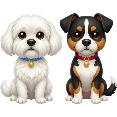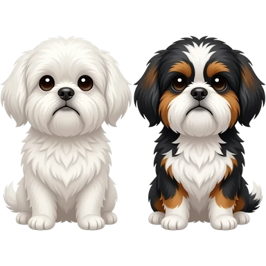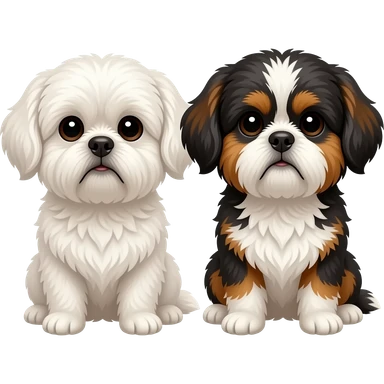 two Shih Tzu Maltese one white one tricolor black brown white emoji
