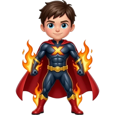 Make a super hero named cipher x and he has fire power make him look like a kid no muscle emoji