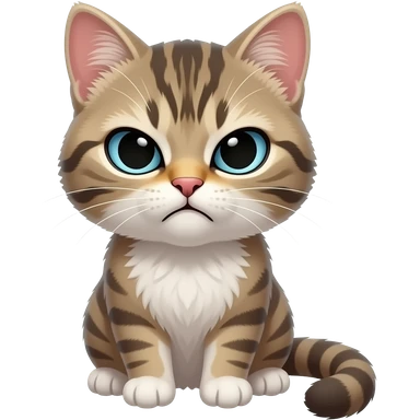 a small grey kitten sitting on a seat and wearing headphones and there is a sims logo over her head emoji