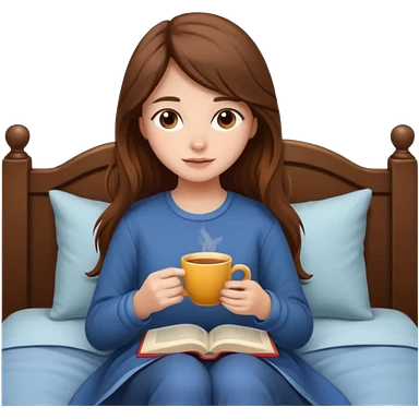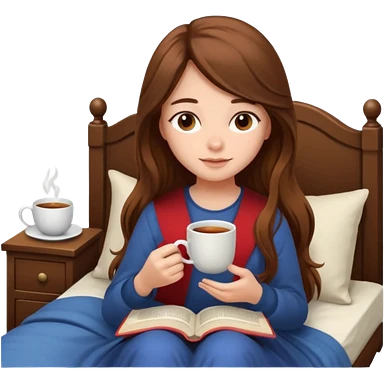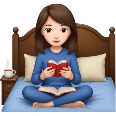 Девушка сидит на кровати и читает книгу , в руках чай emoji
