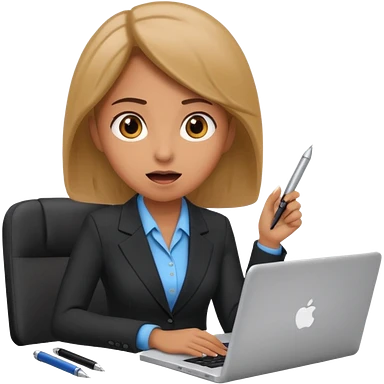 Девушка бизнесвумен на работе сидит за ноутбуком и ей предложили повышение emoji