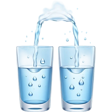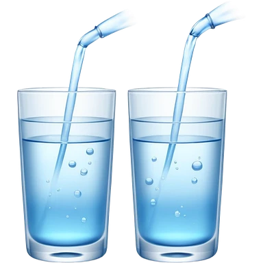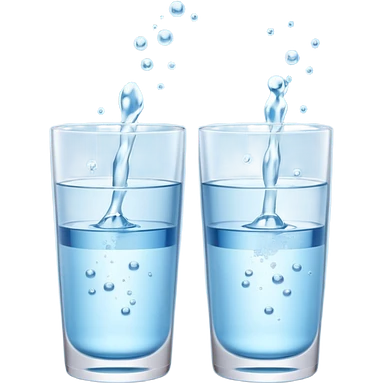3D illustration of two glasses of water — cold ❄️ and hot 🔥. Particles dissolving faster in hot water, slower in cold. Minimalist, clean, bright, modern 3D icon style. emoji