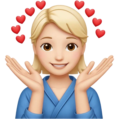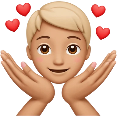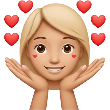 Classic apple style yellow emoji face smiling with hand in frame with their thumb and pointer finger crossed emoji