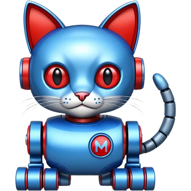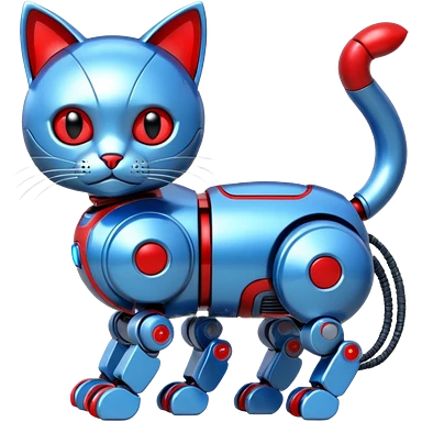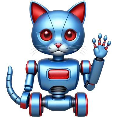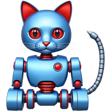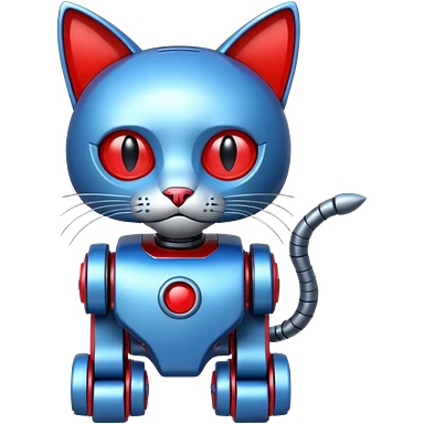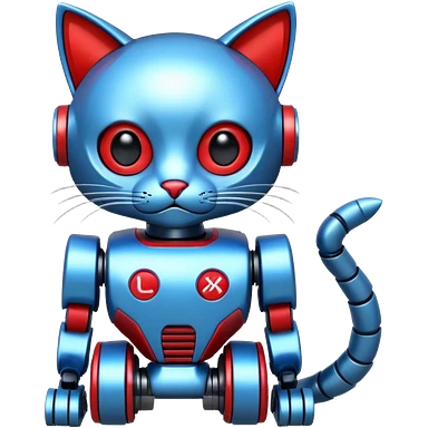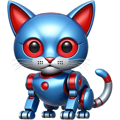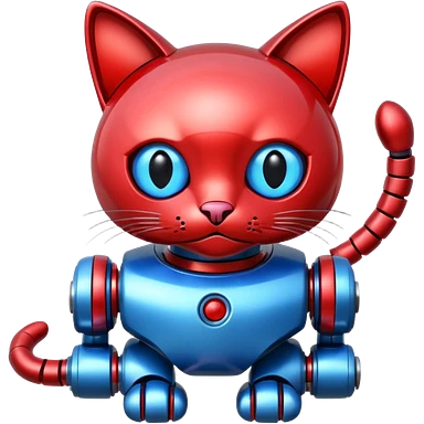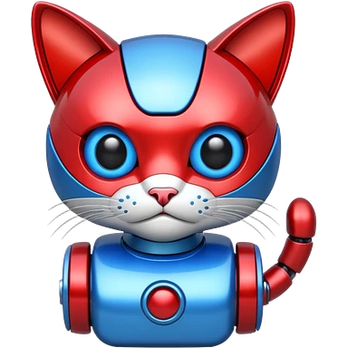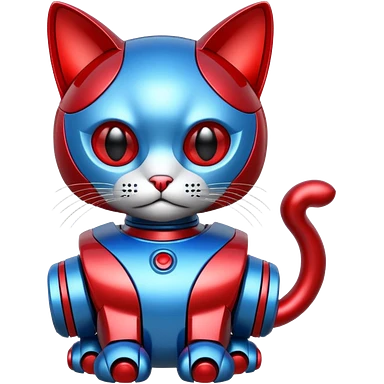 generate robot cat, glossy, realstic, red and blue color emoji