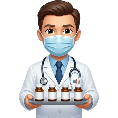haz una persona con bata y medicamentos que no tenga tapabocas y estetoscopio emoji