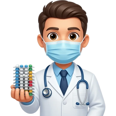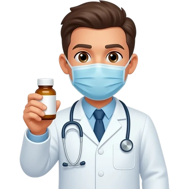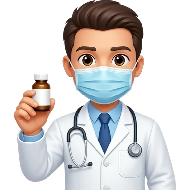 haz una persona con bata y medicamentos que no tenga tapabocas emoji