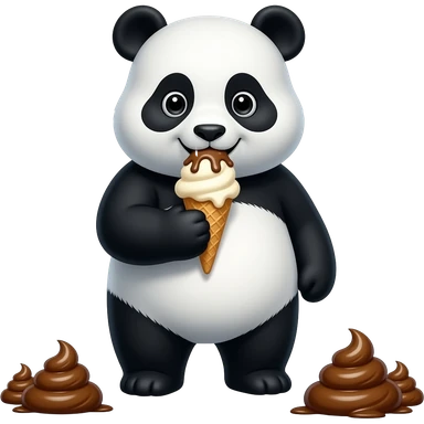 A panda eating ice cream full of poop emoji
