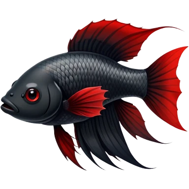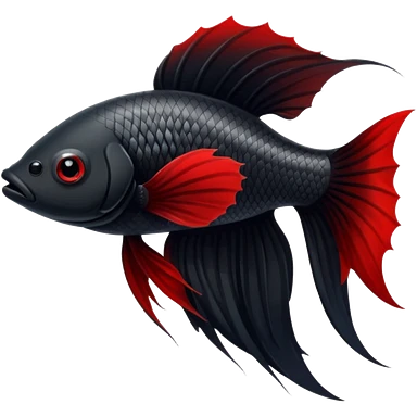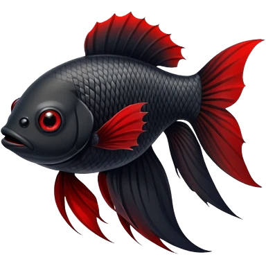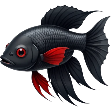 Fully Black with tiny red lines betta fish short fins black and white eyes emoji