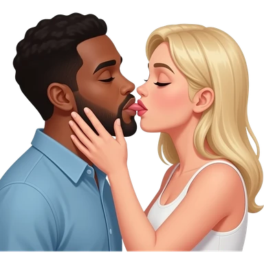White woman giving black man oral sex emoji