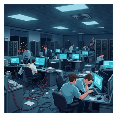Disorganised IT office, called D&T emoji