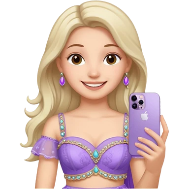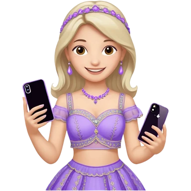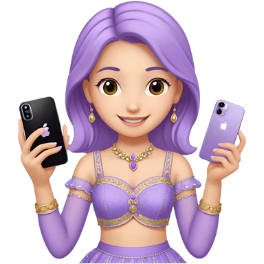 Make a girl standing in mirror in lavender lengha holding a iphone 16 pro max emoji
