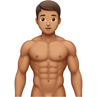 man standing with naked torso and showing penis emoji