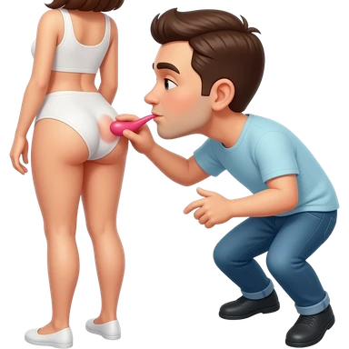 Man with tongue in woman’s bare ass emoji