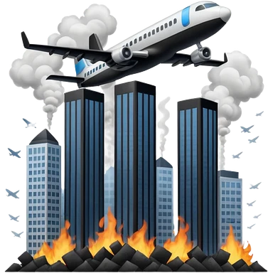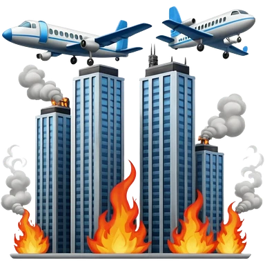 Two similar skyscrapers and the plane that crashed into them. emoji