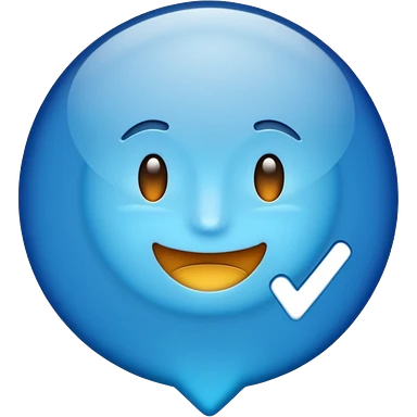 Blue circle with irregularities on it on it is boundaries and it should have a white tick no face emoji