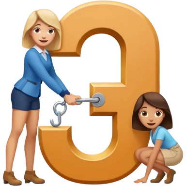 A giant Letter J with a woman on all fours with face over the hook or lower descender of the letter, smiling emoji